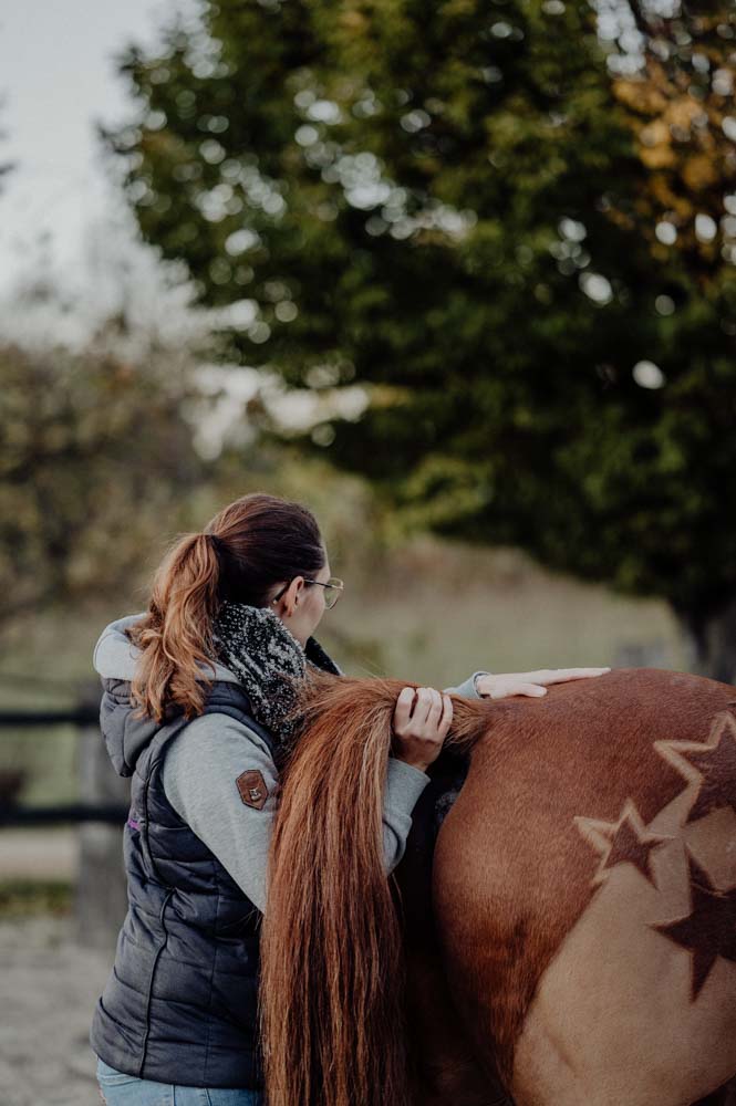 Meist begleite ich Sie gleich mehrere Stunden. Dies hat den Vorteil, dass Sie öfter mal das Outfit wechseln kann, wir gleich mehrere Pferde behandeln und auch verschiedene Behandlungsmöglichkeiten ablichten können. Das bringt natürlich viel mehr Abwechslung in den Feed! Ausserdem begleite ich sie ja bei der richtigen Arbeit. Da wird nichts gestellt, sondern 1 zu 1 gezeigt, was wirklich passiert!
